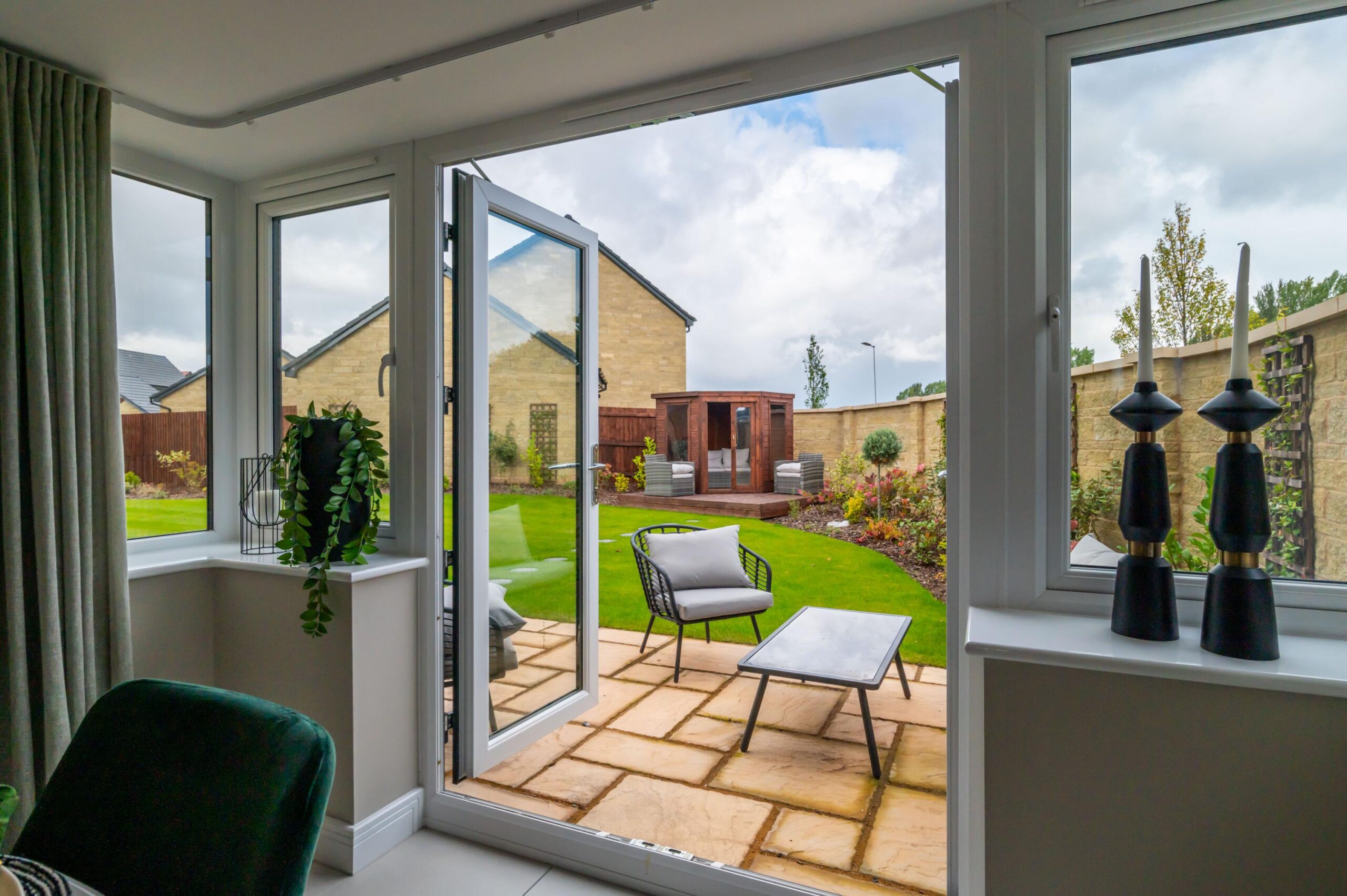 PAS 24 compliant multi-point locks, internal beads and security keeps. Optional laminated glass and 3-star security cylinders for enhanced protection.