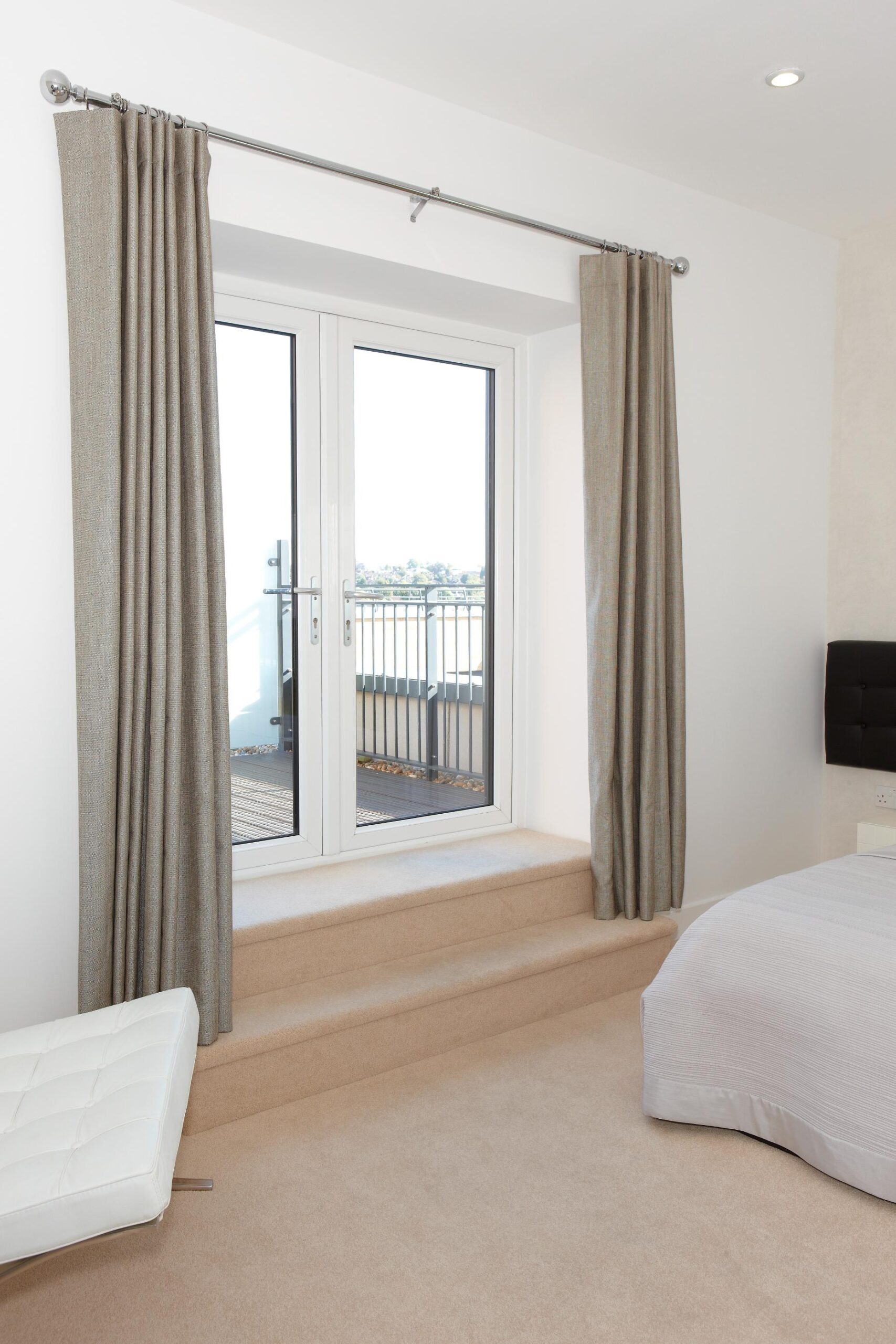 Perfect for upper floors, our Juliet balcony doors provide uninterrupted views and ventilation without compromising safety. Available in sleek aluminium or uPVC frames with glass or steel balustrades.